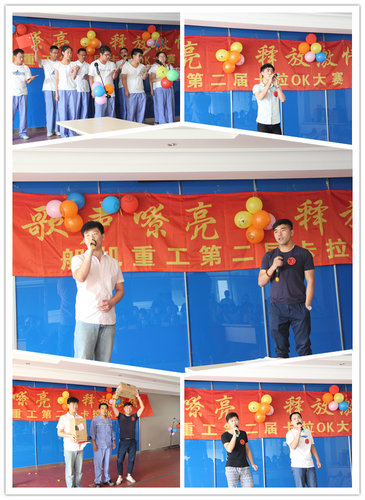 2014年8月15日 下午,船機重工510會議室迎來了:歌聲嘹亮?釋放活力,第二屆夏季卡拉OK大賽的決賽。本次共有獨唱、對唱、合唱共計37名來自不同崗位的員工參加,音樂無國界,快樂你我他,一首首優美的旋律,深情的演繹,動人的歌聲,以及臺上、臺下熱情的互動,將比賽推向一個又一個的高潮。本次比賽還增添了最佳舞臺獎和最佳人氣獎,誰的舞臺表現力是最讓你看好,誰又是你心中最喜歡的選手呢,喜歡他就為他投上寶貴的一票,讓他成為今天最耀眼的明星!